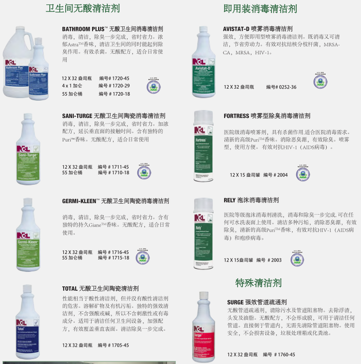 干净、卫生的卫生间反映了设施的整体清洁程度。NCL的卫生间清洁系统提供了最先进的清洁、消毒和除臭产品,以确保最大功效的控制卫生间环境中致病细菌。对于地板,墙壁,和其他表面,你也会找到一个更完整的程序。健康 经济 的清洗方案可以选择适合清洁人员使用的化学输送系统。低成本的传统包装提供最大的灵活性。稀释控制管理系统提供稀释状态下各种各样的产品,以达到最佳效果。